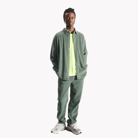 Pantalon en twill de coton coupe carotte Coupe carotte Poches diagonales à l'avant avec poche briquet sous la ceinture Deux poches jean au dos Surpiqûres ton sur ton Cordon en cuir végétal avec noeud coulant placé sur le centre de gravité Étiquette HOMECORE en cuir synthétique 97% Coton 3%...